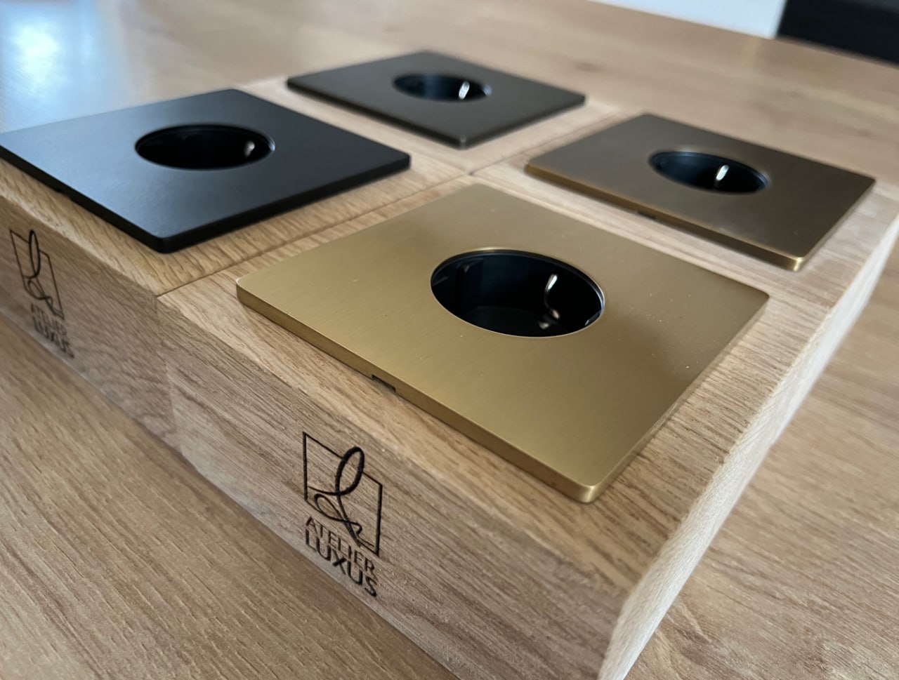 Перші зразки розеток Atelier Luxus під серію Alisse Lutron: відмінне виконання, великий вибір механізмів та багато варіантів кастомізації.